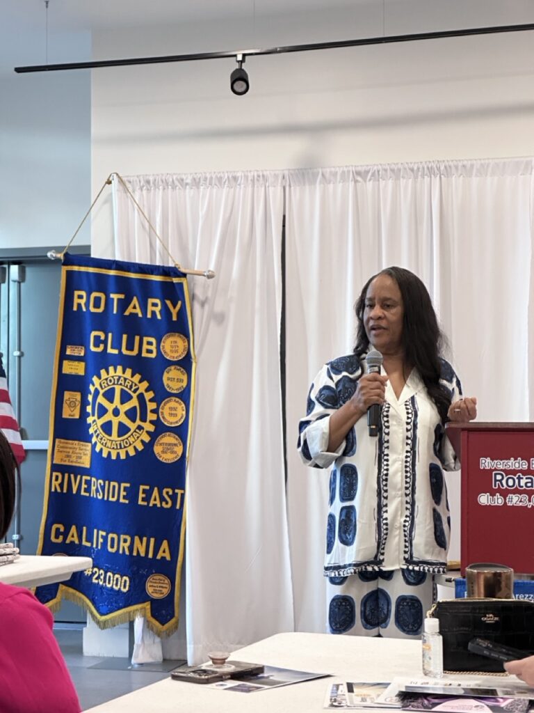 We explored two powerful exhibits that highlight important stories from our region’s history. Dr. Norman Towels guided us through the Legacy of Clarence Muse exhibit, which features artifacts from his extensive collection celebrating the life and career of Clarence Muse — a pioneering Black actor, writer, and composer who appeared in more than 200 films and helped challenge racist stereotypes in early Hollywood. Muse, who lived in nearby Perris, used his platform to push for greater dignity and representation in entertainment. Dr Towels is also a member of the Perris Rotary Club so it was great to have him visit us.