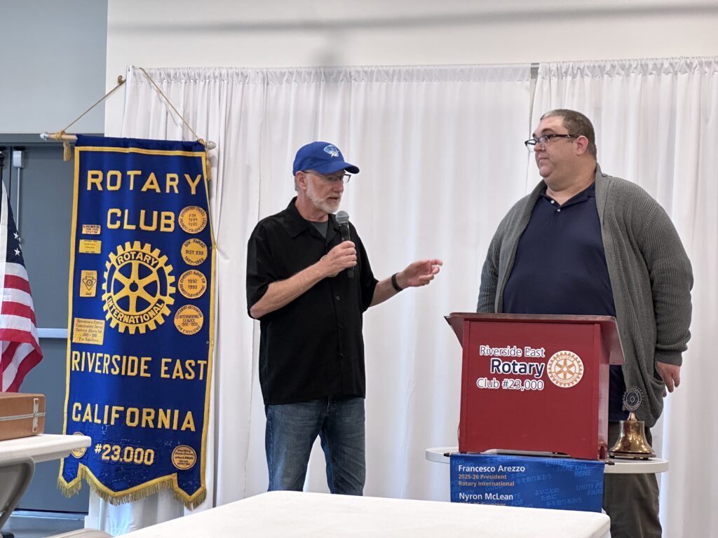 Riverside East Rotary enjoyed hearing from Ken Crawford, a local writer and arts storyteller. Best known for his frequent contributions to The Riversider and the Raincross Gazette, he is currently working on 60 Miles East. This project explores Riverside’s rich creative history through music, art, and local culture. The project documents and celebrates the city’s artistic roots, including iconic spaces like Spanky’s Café and the Barn, while highlighting the people and movements that helped shape Riverside’s cultural identity.