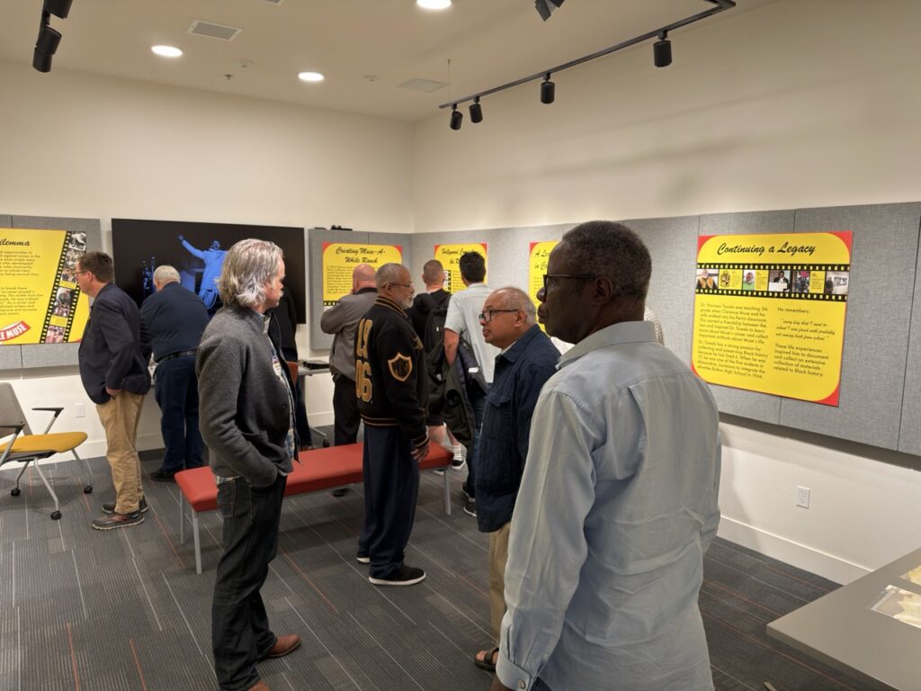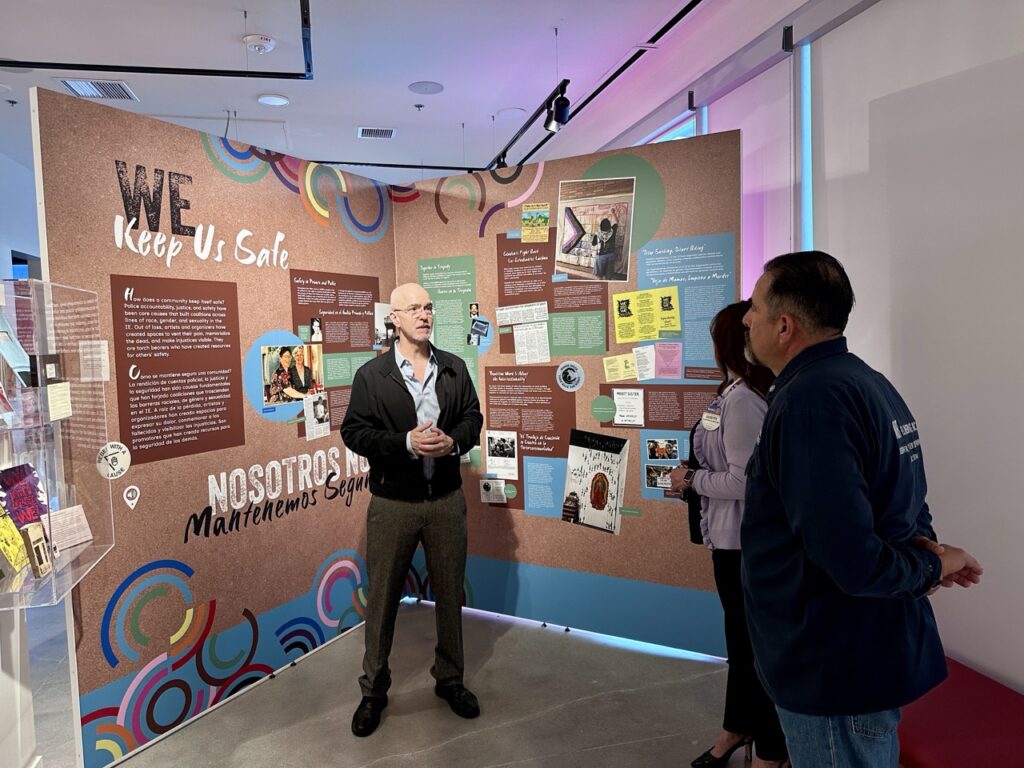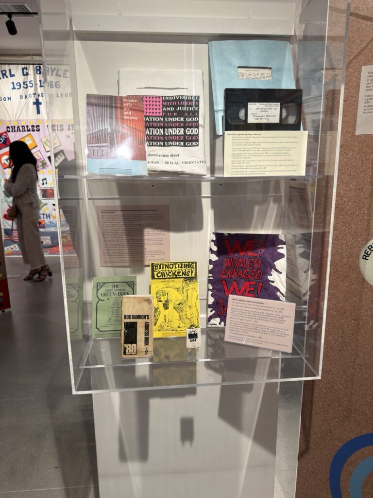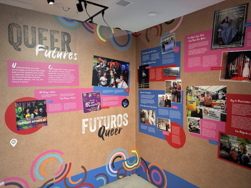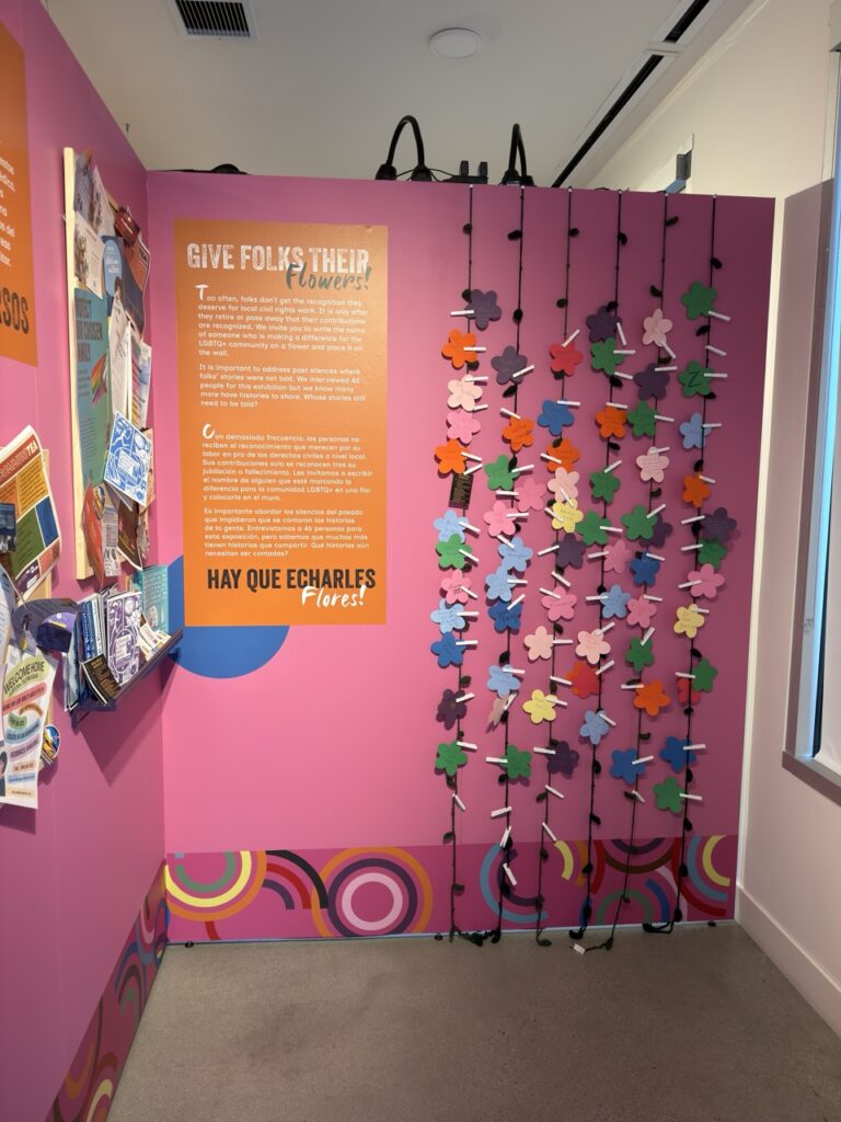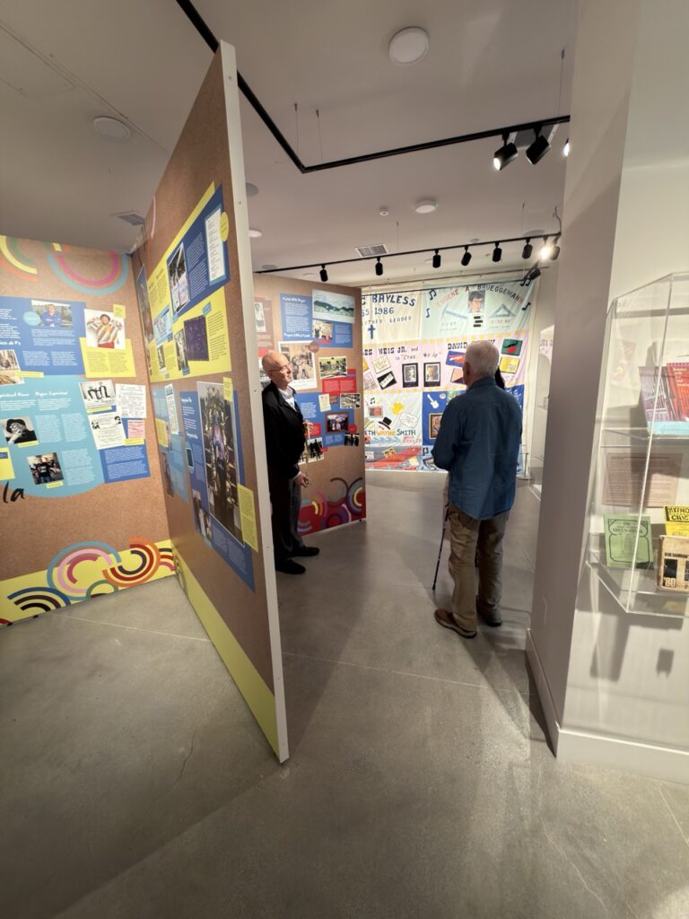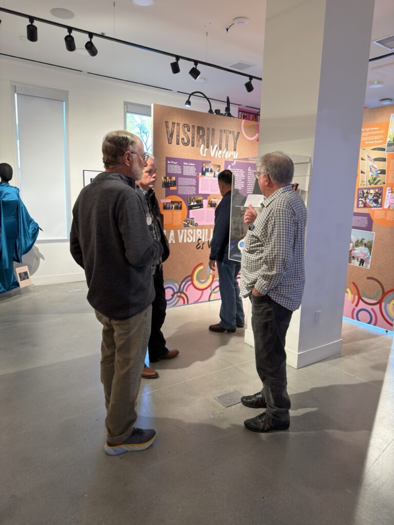 We also toured the Out in the I.E. exhibition with Robert Merrill. This exhibit explores the history and contributions of the LGBTQ+ community in the Inland Empire, covering themes like activism, art, political representation, and community care across several decades. The exhibit highlights personal stories, milestones, and the ongoing efforts that have helped shape a more inclusive community throughout the Inland Empire.