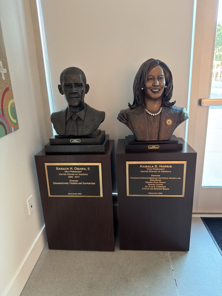We explored two powerful exhibits that highlight important stories from our region’s history. Dr. Norman Towels guided us through the Legacy of Clarence Muse exhibit, which features artifacts from his extensive collection celebrating the life and career of Clarence Muse — a pioneering Black actor, writer, and composer who appeared in more than 200 films and helped challenge racist stereotypes in early Hollywood. Muse, who lived in nearby Perris, used his platform to push for greater dignity and representation in entertainment. Dr Towels is also a member of the Perris Rotary Club so it was great to have him visit us.